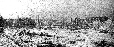 The Don Valley would see feats of engineering less mundane than the canal; even, to some eyes, touched by the sublime. Talk of spanning its wide reach at Bloor, where the river ran wild (and still does), had begun in 1880; a bridge was begun by 1915. And no mean bridge it is. The first big commission of Public Works Commissioner Roland Caldwell Harris (we'll see another, even bigger, at Queen's east end), built mainly by immigrants, most Italian or Macedonian working shifts day and night for Dominion Bridge, it was christened the Prince Edward Viaduct. It's more often called the Bloor Viaduct, carrying that street east from Parliament, over an arch spanning the Rosedale Ravine, over four more anchored in massive concrete piers marching across the valley, to Danforth Avenue -- nearly a kilometre in all, most of it suspended in mid-air. As are thousands who, every day, see its black steel superstructure -- from the inside, on subway trains. Thousands more see it from beneath, driving the Don Valley Parkway.